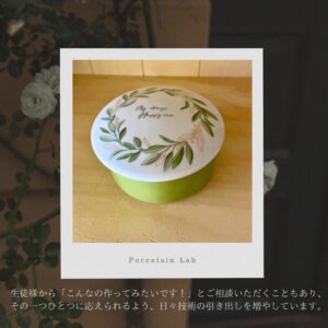 このたび、4ヶ月半にわたって受講していた絵付けのスキルアップレッスン「ポーセラボ」を修了し、ディプロマをいただきました。 レッスンでは、絵の具や筆づかいの基本から、草花を美しく描くための塗り方やペンワークな […]