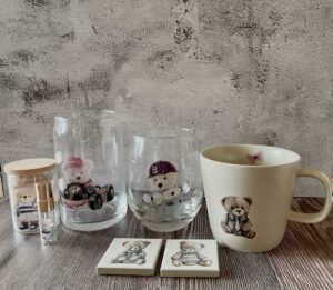 グラスや白磁にすでに焼成済みのものに、加工していただきます。